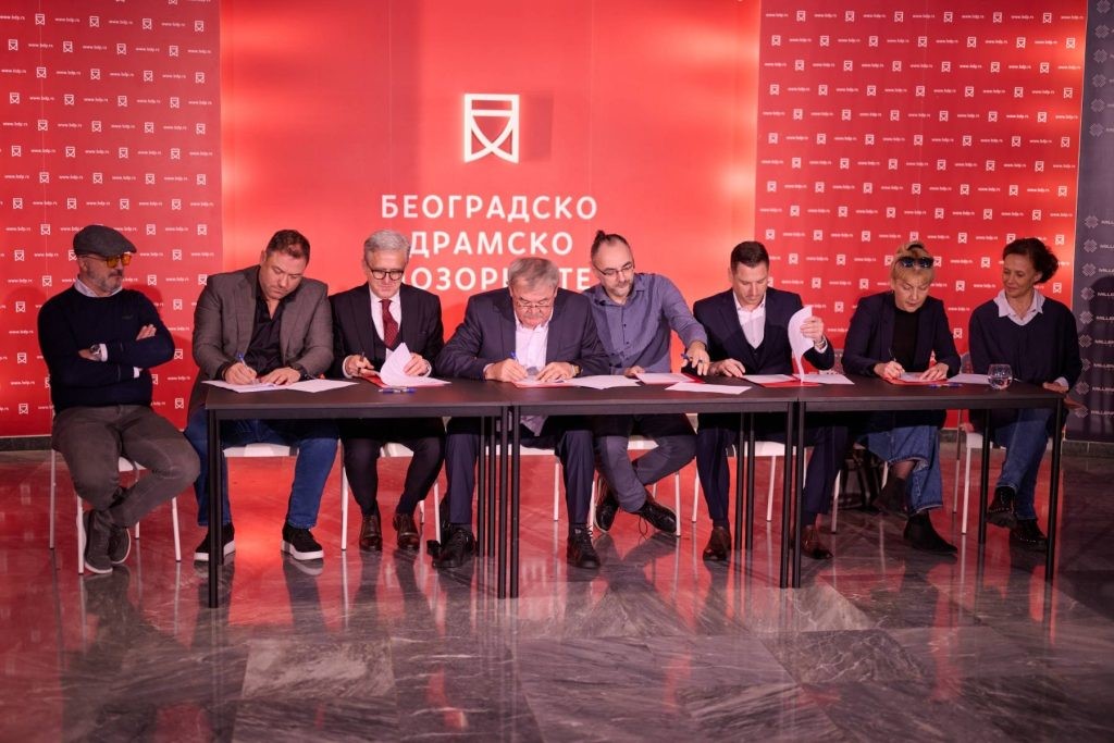 Договорот го потпишаа директорите на: Драмскиот театар од Скопје, Роберт Вељановски; Белградски драмски театар, Југ Радивојевиќ; Местен театар Љубљана, Барбара Хиенг Самобор; Театар Улисис, Душко Љуштина; Камерен театар 55, застапуван од Ведран Фајковиќ; Центарот за култура Тиват, Горан Божовиќ.
