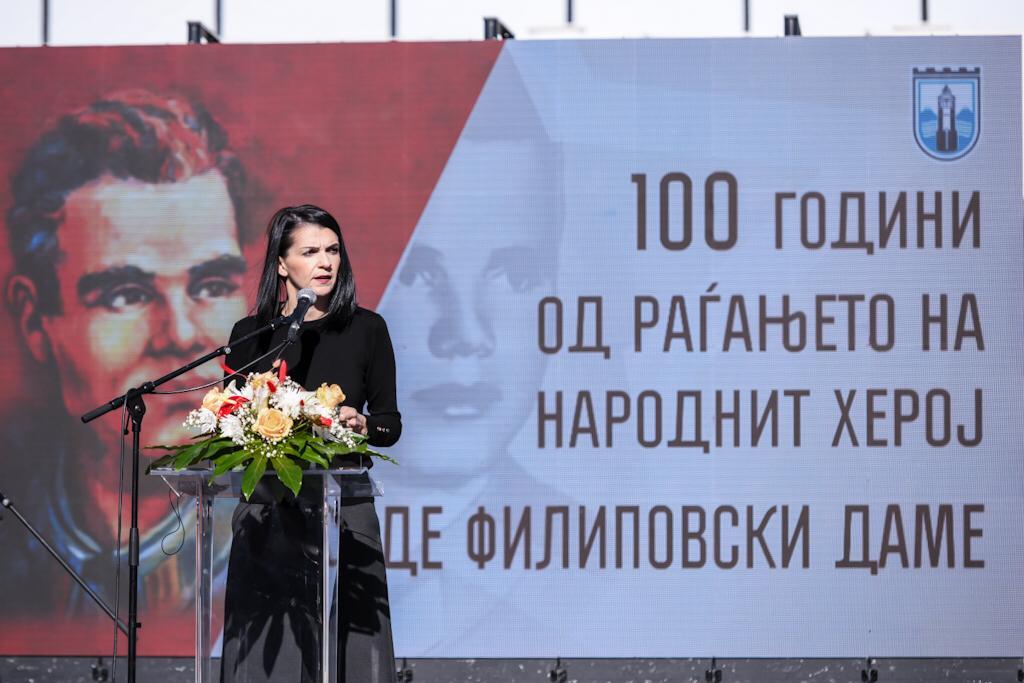 Министерката за култура Бисера Костадиновска-Стојчевска, која денеска е во работна посета на Гостивар, на Градскиот плоштад се обрати на настанот по повод 100 години од раѓањето на еден од најголемите македонски херои и борци, Чеде Филиповски-Даме.