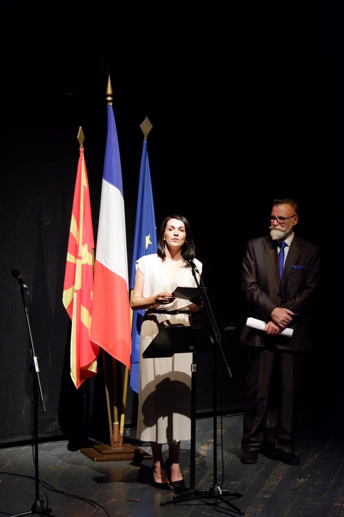 Благодарност и до Францускиот институт кој речиси 5 децении придонесува за квалитетот на нашата соработка. Ѝ благодарам на Европската комисија која преку програмата Креативна Европа го поддржа овој проект на „Фејм“. Ја користам можноста да им се заблагодарам на основачите на „Фејм проџект“, Французи кои ги сметаме за наши и во чие студио во Скопје, со македонски музичари, продуцираат музика со врвен квалитет за многубројни светски филмови, серии и настани на ниво на спектакли.