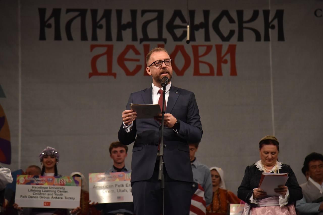 Министерот за култура и туризам, Зоран Љутков, на платото пред Офицерскиот дом во Битола, се обрати на свеченото отворање на 54. Републички фестивал на народни песни и игри „Илинденски денови“.