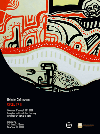 Во Галеријата MC во Њујорк денеска, 2.11.2023 година (четврток), во 18:00 часот ќе биде отворена ликовната изложба „Циклус 19 II“ на академската уметница Христина Зафировска.